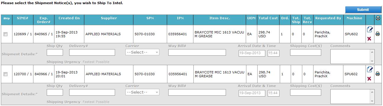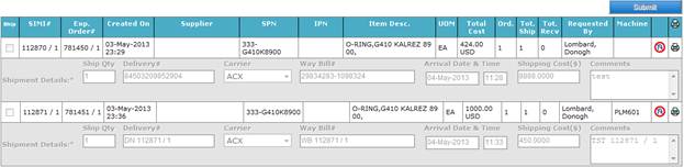 criteria’s, click on Search button to view expedite order shipments on screen,