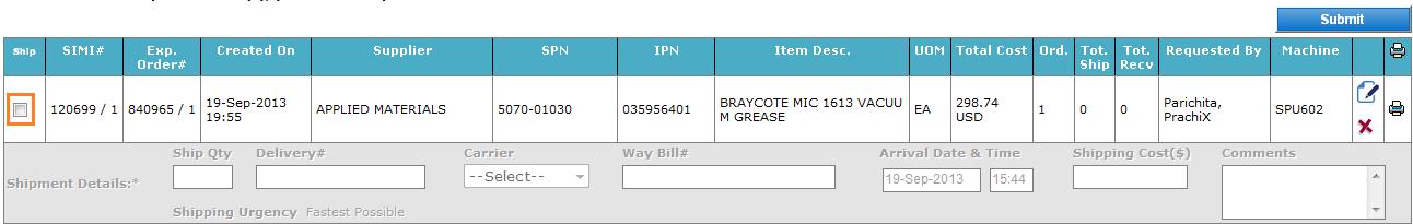 b. Tick the Ship checkbox for a shipment