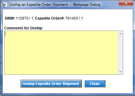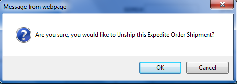 on Unship Expedite Order Shipment button.