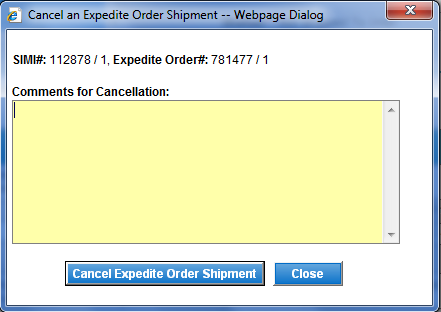 Cancellation and click on Cancel Expedite Order Shipment button.