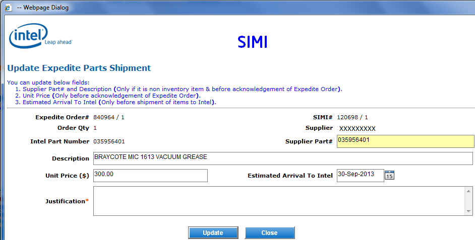 d. update Unit Price ,EAT and Justification