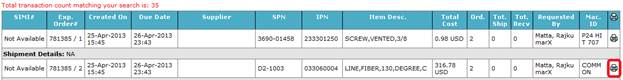 criteria’s, click on Search button to view expedite order shipments on screen,